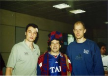 Tras el susto que nos brindó Scariolo «casiganando» aquella primera liga, que finalmente se fue a Manresa, y tras algunos sobresaltos en el banquillo, llegó la época Dusko Ivanovic. Para entonces, a finales de siglo, yo me había hecho ya abonado del Baskonia, por supuesto sin la más mínima intención de transmitir mi afición a este deporte a Markel y muy lejos de pretender influencia paternal alguna, claro, claro. Bueno, que fuimos los dos abonados.