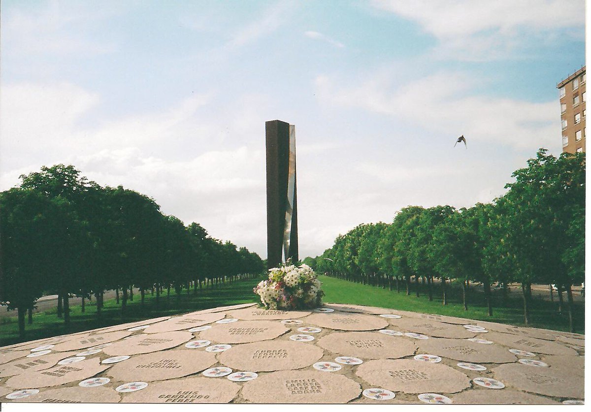 Fue un acto de memoria a las víctimas del terrorismo, a TODAS las víctimas del terrorismo. El memorial consiste en una pequeña colina sobre la que se hallan colocadas unas losetas, cada una de las cuáles tiene inscrito el nombre de una víctima, salpicadas por el dibujo del anagrama que el escultor creó para el colectivo de víctimas del País Vasco.