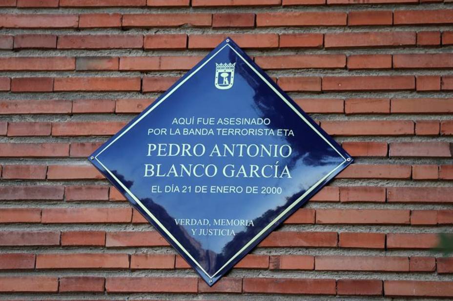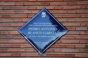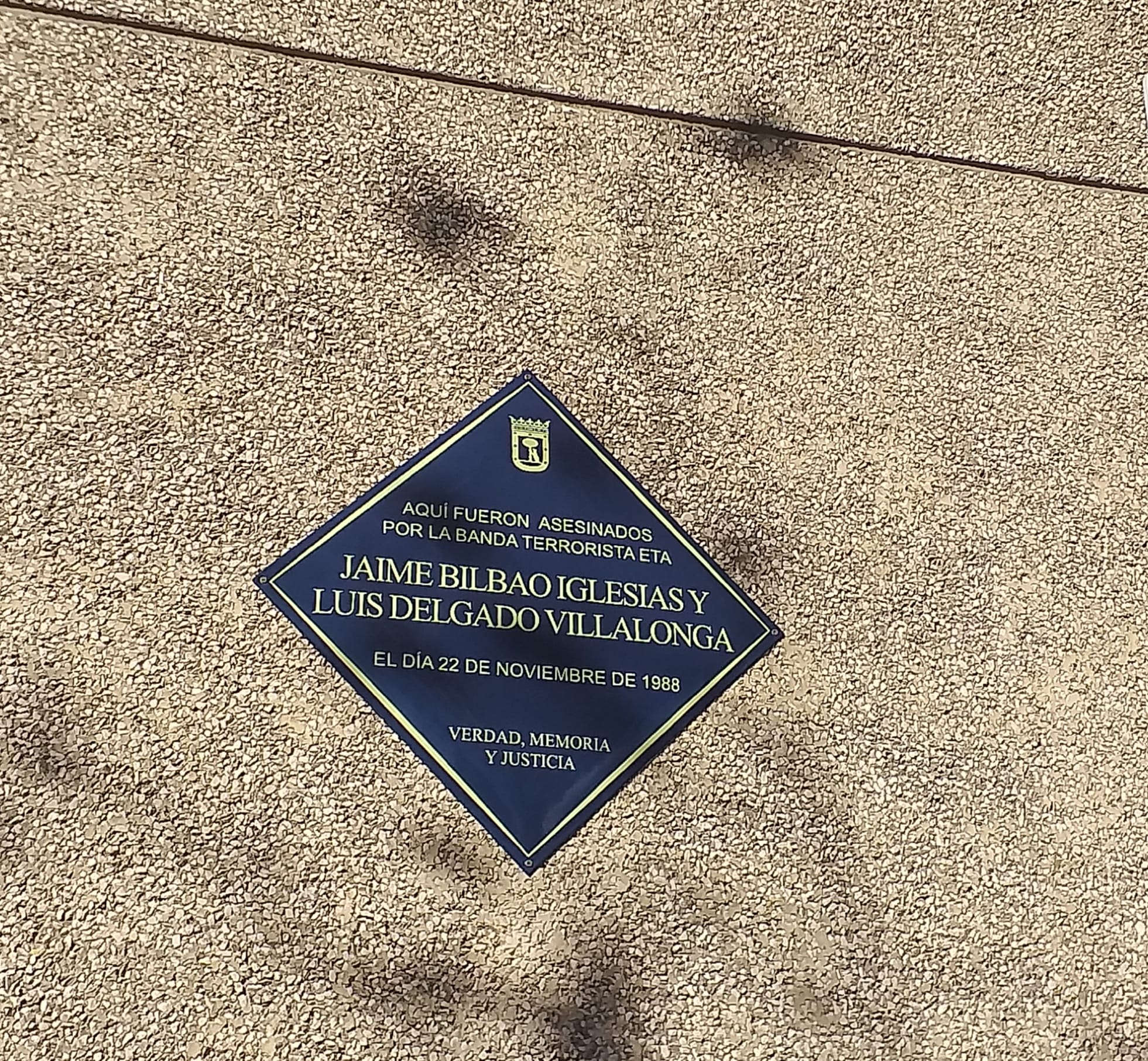 Observando la placa, me ha venido a la cabeza la docena larga de mociones que el PP presentó ante las Juntas de Distrito del Ayuntamiento de Madrid, a lo largo del último trimestre de 2018 y los primeros meses de 2019. En ellas, urgían la colocación de las placas previstas para recordar a todas las víctimas de todos los terrorismos habidas en Madrid en las últimas décadas.