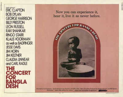 Un día anunciaron “Concierto para Blangla Desh”. La música ya era una parte importante de nuestras vidas, lo cual a esa edad y en aquellos años requiere poca explicación. Allá fuimos, por supuesto. Era, además, un concierto con fines humanitarios, para denunciar la pobreza que asolaba el país asiático y recaudar fondos para paliarla. Inició el asunto Ravi Shankar, un para nosotros desconocido músico indio muy amigo y admirado de George Harrison, este sí, familiar por su condición de beatle. Luego fue él mismo quien nos deleitó con alguno de sus reconocidos éxitos.