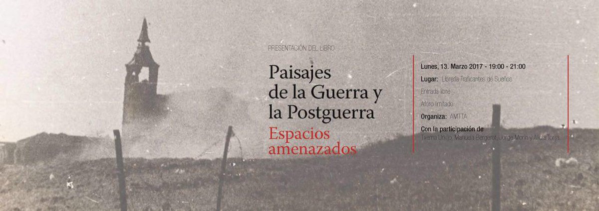 Participación en la presentación del libro «Paisajes de la Guerra y la Postguerra. Espacios amenazados». Coordinado por Alicia Torija y Jorge Morín. En la librería «Traficante de sueños».