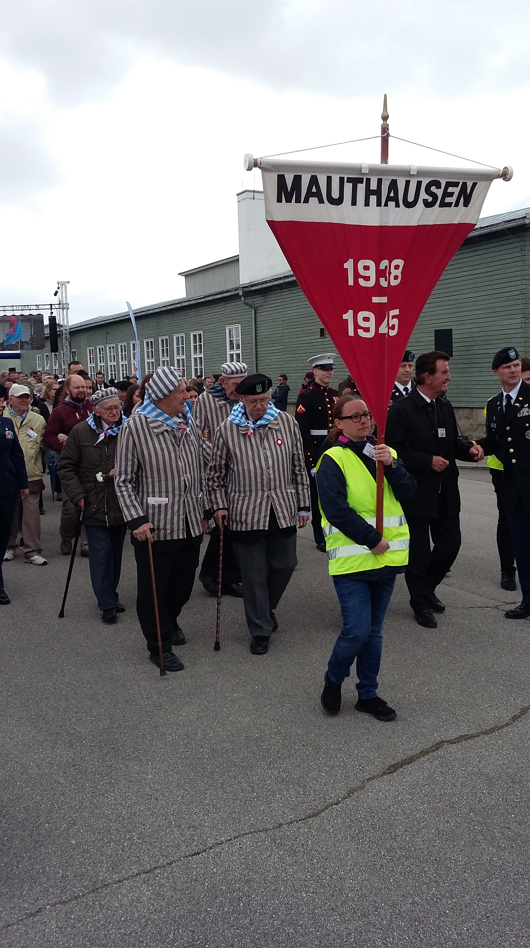 Actos internacionales de conmemoración de la liberación del campo de concentración de Mauthausen. Colocación de placa de homenaje y reconocimiento a los madrileños que sufrieron el horror de este campo, en nombre y representación del Ayuntamiento de Madrid. Ofrenda floral.