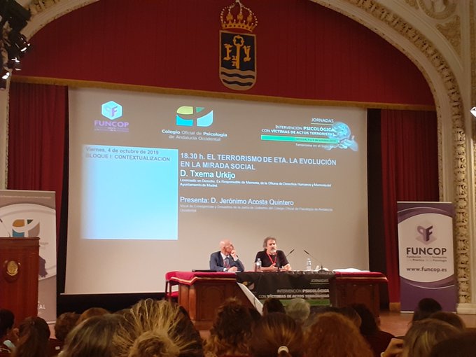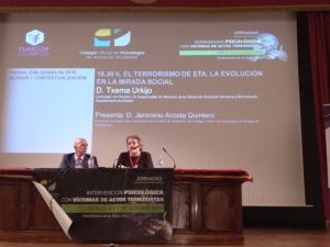Conferencia «El terrorismo de ETA. La evolución en la mirada social», en el marco de las Jornadas sobre «Intervención psicológica con víctimas de actos terroristas», organizadas por el Colegio Oficial de Psicólogos de Andalucía Occidental.
