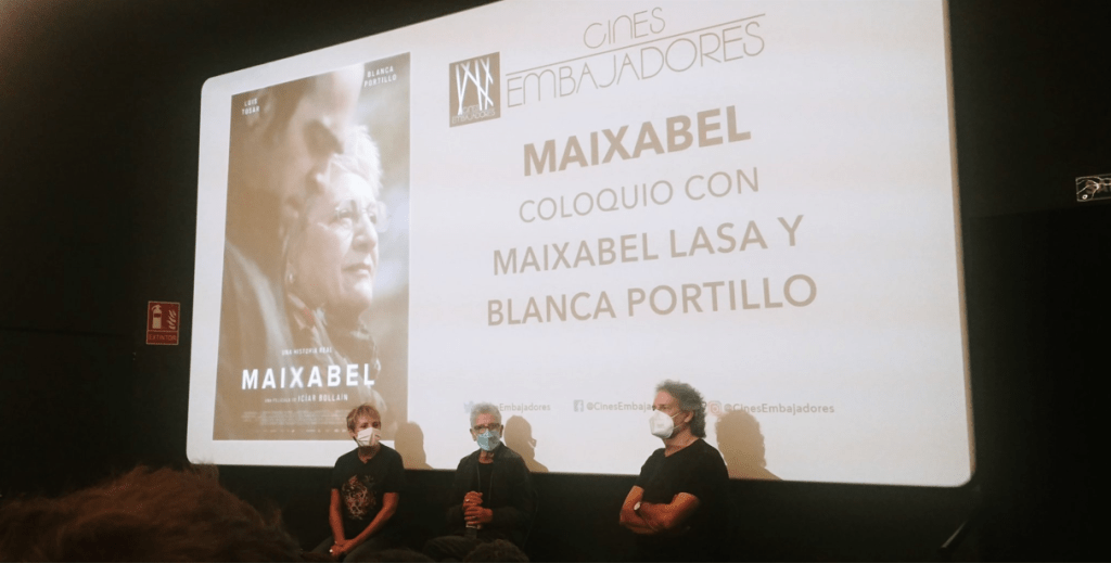 Coloquio en el Cine Embajadores, tras la película «Maixabel», con la propia Maixabel Lasa y Blanca Portillo.